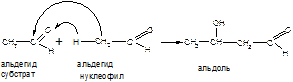 В карбонильных соединениях имеется активный кислотный центр на втором атоме углерода (a-СН- кислотный центр), поэтому при наличии на втором атоме углерода атома водорода идет образование альдоля. В результате углеродный скелет удлиняется на два углерода.