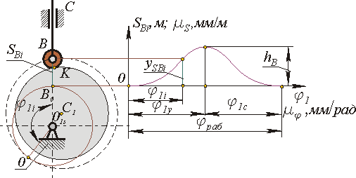 по полученным перемещениям SВi строится диаграмма функции положения центра ролика толкателя SВi= f(j1)