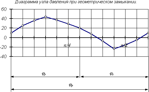 Профиль кулачка будет удовлетворять заданным условиям, если значения угла давления на фазах удаления по модулю будут меньше или равны допустимой величине угла давления