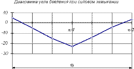 При построении диаграммы угла давления для механизма с силовым замыканием необходимо учитывать, что рассматриваемый при проектировании угол давления в высшей паре имеет смысл только на фазе удаления. На фазе сближения толкатель двигается под действием силы упругости пружины или сил веса, здесь угол давления - это угол между вектором этой силы и вектором скорости точки ее приложения на толкателе. Поэтому для механизмов с силовым замыканием диаграмма строится только на фазе удаления.