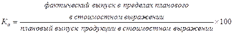 Оценка выполнения плана по ассортименту осуществляется по методу наименьшего процента (определяется процент выполнения плана по всем видам продукции и выбирается наименьшее значение) или среднего процента по формуле: