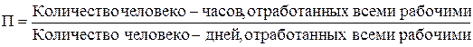 * средняя продолжительность рабочего дня (П):