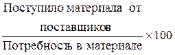 В ходе анализа проверяется качество полученных от поставщиков материалов, соблюдение сроков поставки материалов (коэффициент ритмичности) и анализируется состояние складских запасов. В последнем случае сопоставляется фактический запас материала в днях (фактический запас материала в натуре делится на среднесуточный расход материала) с нормой запаса.