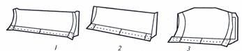 Рис 8.3 – Типы бульдозерных отвалов: 1 – прямой поворотный, 2 – прямой неповоротный, 3 – полусферический, 4 – сферический, 5 – сферический для сыпучих материалов, 6 – с толкающей плитой.