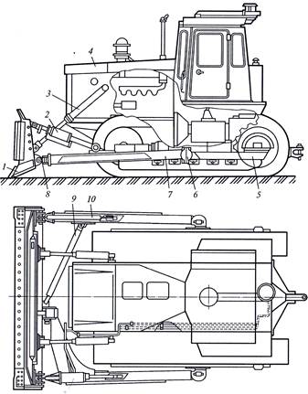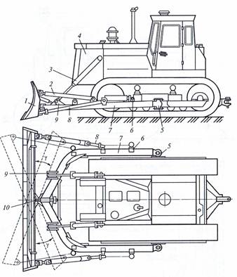 Рис. 8.5 – Конструктивная схема гусеничного бульдозера с поворотным отвалом