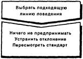 После вынесения оценки процесс контроля переходит на третий этап. Менеджер должен выбрать одну из трех линий поведения: ничего не предпринимать, устранить отклонение или пересмотреть стандарт (рис.4.).