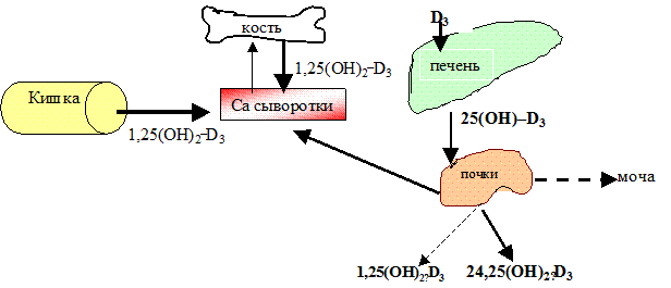 В нормальных условиях повышение содержания кальция в крови будет приводить к образованию неактивного 24,25(ОН)2-Д3, который не вызывает резорбцию («рассасывание») кости, однако при гипервитаминозе Д этот механизм становится не эффективным.
