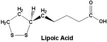 · Липоевая кислота – идеальный антиоксидант. Обнаружена её высокая эффективность в защите организма от повреждающего действия радиации и токсинов. Она устраняет свободные радикалы, образующиеся при окислении пирувата в митохондриях, реактивирует другие антиоксиданты – витамины Е и С, а также тиоредоксин и глутатион (глутатион-SH – трипептид, наряду с аскорбатом он является основным водорастворимым антиоксидантом клетки). Липоевая кислота предохраняет от перекисной модификации атерогенные липопротеины (ЛПНП). Синергичное действие липоевой кислоты с витаминами Е и С является мощной протекцией атеросклероза.