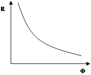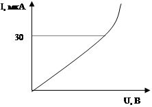 Фоторезистор – это однородный полупроводник, спротивление которого зависит от освещенности полупроводникового слоя. С увеличением освещенности за счёт внутреннего фотоэффекта увеличивается кинетическая энергия электронов, тем самым повышается вероятность перехода электрона из валентной зоны в зону проводимости, увеличивается их число в зоне проводимости и увеличивается проводимость полупроводника. В качестве полупроводящего материала используются оксиды и арсениды галлия, германия и другие, более сложные соединения. Зависимость сопротивления фоторезистора от освещенности представлена на рис. 1. Вольтамперная характеристика (ВАХ) представлена на рис.2. Согласно ей фоторезистор является линейным прибором. Линейность характеристики нарушется лишь при превышении допустимого значения тока, в этих случаях применяют охлаждение, что намного повышает стабильность и чувствительность прибора.