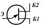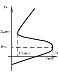 При нулевой разнице потенциалов между Э. и Б2 ток эмиттера равен нулю. При превышении потенциала на эмиттере относительно Б2 по абсолютной величине (на Э. “-” больше, чем на Б2) происходит незначительное увеличение тока до напряжения Uвкл (см. рис), при достижении его происходит лавинный процесс перехода электронов из Э, в Б., при этом резко увеличивается ток базы и увеличивается падение напряжения на Rн; происходит перераспределение напряжений между Э.-Б2, Rн и Б1-Э., поэтому входная ВАХ имеет участок с отрицательным сопротивлением, его-то и используют для усилительных свойств.