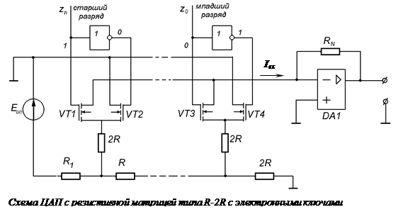 Схема ЦАП (приведена так называемая R-2R -схема):
