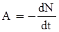 Величина, равная числу атомных ядер, распавшихся за единицу времени называется активностью радионуклида. Активность представляет собой скорость распада, и будет определяться выражением:
