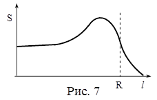 Значение удельных ионизационных потерь с глубиной изменяется неравномерно. Такой ход кривой связан с уменьшением скорости α-частиц по мере проникновения в вещество, что увеличивает вероятность взаимодействия α-частицы с атомами среды (рис.7).