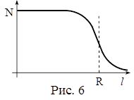 β-частицы имеют разные значения энергии и поэтому проникают в однородную среду на разную глубину. Изменение числа β-частиц по мере их проникновения в вещество будет иметь вид (рис.8).