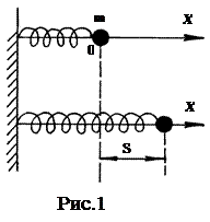 Рассмотрим колебания пружинного маятника вдоль горизонтальной оси при отсутствии силы сопротивления. Пружинный маятник представляет собой массивный шарик массой m, прикрепленный к пружине с ничтожно малой массой и жесткостью k. Другой конец пружины закреплен неподвижно. Если вывести шарик из равновесия и отпустить, то под воздействием силы упругости деформированной пружины система пружина–шарик придет в колебательное движение. Положение шарика на оси будем определять смещением s, т.е. расстоянием от положения равновесия до шарика (рис.1). Наша цель решить основную задачу механики – найти ответ на вопрос: где будет находиться тело в произвольный момент времени t, т.е. найти вид функции s = f(t)?