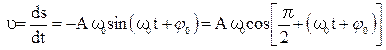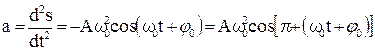 Получим уравнения, описывающие изменения скорости и ускорения тела, совершающего гармонические колебания. Пусть s = Аcos(ω0t + φ0), тогда: