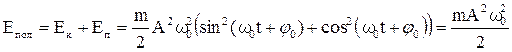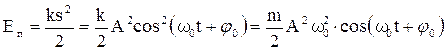 Рассмотрим процесс колебательного движения с энергетической точки зрения. Смещая тело из положения равновесия, мы деформируем пружину, сообщая тем самым системе запас потенциальной энергии. Отпустив тело, мы даем ему возможность двигаться к положению равновесия. При этом потенциальная энергия системы превращается в кинетическую. В момент прохождения положения равновесия потенциальная энергия полностью превращается в кинетическую. Продолжая движение по инерции, тело опять деформирует пружину, т.е. кинетическая энергия начинает превращаться в потенциальную. В момент, когда кинетическая энергия полностью превра