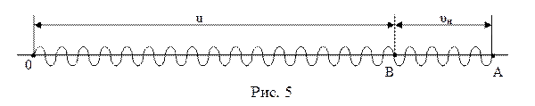 к неподвижному источнику. При этом, он встречает на своём пути за один и тот же интервал времени больше волн, чем при отсутствии движения. Наблюдатель, двигаясь из точки А в направлении к источнику, через секунду окажется в точке В (рис.5). За это же время волна пробежит расстояние численно равное скорости волны в среде u. Т.о. наблюдатель воспримет за секунду число колебаний, «гребни» и «впадины» которых укладываются на длине u +