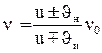 где верхние знаки соответствуют сближению, а нижние удалению источника и приёмника. В случае несовпадения направлений движения источника и приёмника под
