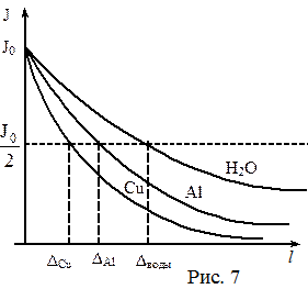 зовать величину, называемую слоем половинного поглощения. Это толщина слоя данного вещества – Δ, которая уменьшает первоначальную интенсивность вдвое – JΔ = J0/2.