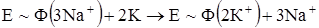 3. Отсоединение у внешней поверхности 3N+ и замена их на 2К+ из внешней среды (ионообмен):
