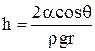 Из рисунка видно, что для вогнутого мениска давление в жидкости будет снижаться (рис.5б), а для выпуклого увеличиваться (рис.5а) по сравнению со случаем плоской поверхности. Высота поднятия (опускания) жидкости в капилляре по сравнению с уровнем жидкости в широком сосуде определяется законом Борелли-Жюрена: