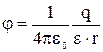 Если принять, что при удалении заряда q0 в бесконечность (r→ ∞) его потенциальная энергия в поле заряда q обращается в нуль, то потенциал поля точечного заряда q на расстоянии r от него: