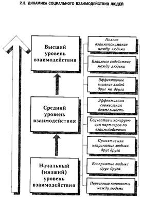 На своем начальном (низшем) уровне взаимодействие представляет собой простейшие первичные контакты людей, когда между ними имеет место лишь первичное и очень упрощенное взаимное или одностороннее «физическое» влияние друг на друга с целью обмена информацией и общения. Такое взаимодействие в силу конкретных причин может и не достигать своей цели, а потому и не получать всестороннего развития.