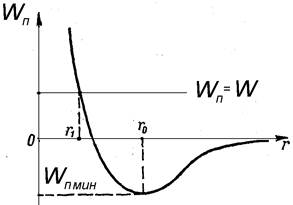 В состоянии устойчивого равновесия система, состоящая из двух взаимодействующих частиц, обладает минимальной потенциальной энергией. Дальнейшее уменьшение r приводит к увеличению W n и превращению ее из отрицательной в положительную.