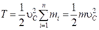 Если тело движется поступательно, то скорость каждой его точки u i одинакова и равна скорости движения центра масс, u С. Тогда формула (5.16) для кинетической энергии поступательного движения примет вид: