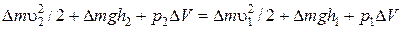 Где υ2 и υ1 – скорости объема в сечениях S 2 и S 1 , h1 и h2 – высота сечений S 1 и S 2 относительно некоторого уровня, соответственно. Изменение полной механической энергии равно работе A внешних сил по перемещению массы D m