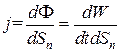 Количество энергии dW, переносимое волной через некоторую поверхность в единицу времени, называется потоком энергии Ф через поверхность. Размерность потока энергии совпадает с размерностью мощности, т. е. Дж/с. По определению: