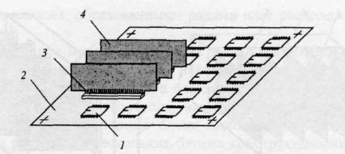1 — микросхема; 2 — объединительная плата; 3 — ответный электрический соединитель ТЭЗ; 4 — ТЭЗ