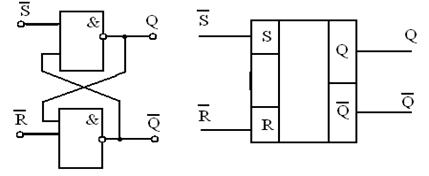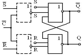 Рисунок 3.4 – RS-триггер на элементах и-не (синхронный с прямыми входами, асинхронный с инверсными входами):