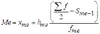 2. Рассчитывается значение медианы по формуле