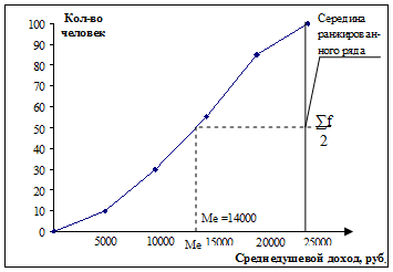 Рис. 4. Кумулята. Графическое определение медианы