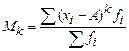 Для описания особенностей распределения используют такую характеристику, как момент. Момент k-го порядка это средний размер k-ой степени отклонений всех значений признака x от какой-либо величины