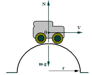 Но это означает, что автомашина в этот момент времени не оказывает никакого давления на мост, т.е. она находится в состоянии невесомости.