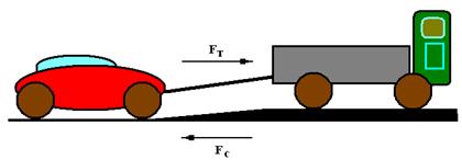 Буксируемый автомобиль представляется механической системой, на которую действует сила тяги –