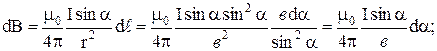радиус вектор, проведённый от элемента тока d l в току поля А; α угол которой образует радиус вектор