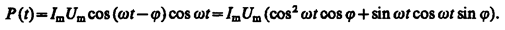 Для гармонических напряжения и тока согласно определению, мгновенная мощность будет равна:
