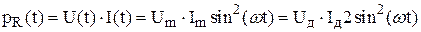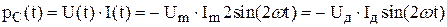 Так как начальные фазы синусоидальных тока и напряжения совпадают между собой, то мгновенная мощность определяется произведением: