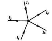 Алгебраическая сумма токов, сходящихся в узле, равна нулю: