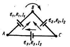Источники тока считаются положительными, если они создают ток, направленный в сторону обхода контура. Применяя к участкам закон Ома, можно записать: