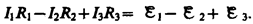 В любом замкнутом контуре, произвольно выбранном в разветвленной электрической цепи, алгебраическая сумма произведений сил токов – Ii на сопротивления – Ri соответствующих участков этого контура равна алгебраической суммеэ.д.с., встречающихся в этом контуре, то есть,