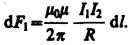 Рассмотрим два бесконечных прямолинейных параллельных тока I1 и I2, расстояние между которыми равно R.