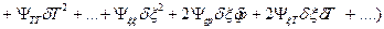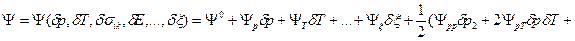 и dξ=0. При малом удалении от равновесия, в случае линейной релаксации, отклонение независимых переменных от равновесных состояний (с индексом 0) рассматриваются как их флуктуации: δр=р-р0, δТ=Т-Т0, δV=V-V0, …, δξ= ξ- ξ0. Раскладывая термодинамический потенциал Ψ в ряд и ограничиваясь только квадратичными членами, получаем: