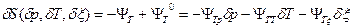 Из разложения термодинамического потенциала Ψ могут быть получены уравнения состояния, связывающие отклонения от равновесных основных функций состояния δV, δS и δΨ и независимых переменных δр, δТ и δξ: