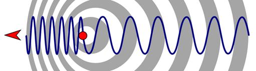 т.е. если источник волн догоняет испускаемые им волны, то длина волны уменьшается. Если удаляется — длина волны увеличивается.