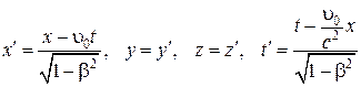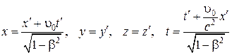 Из преобразований (10.19), следует, что при u0 << c оно совпадает с преобразованиями Галилея.